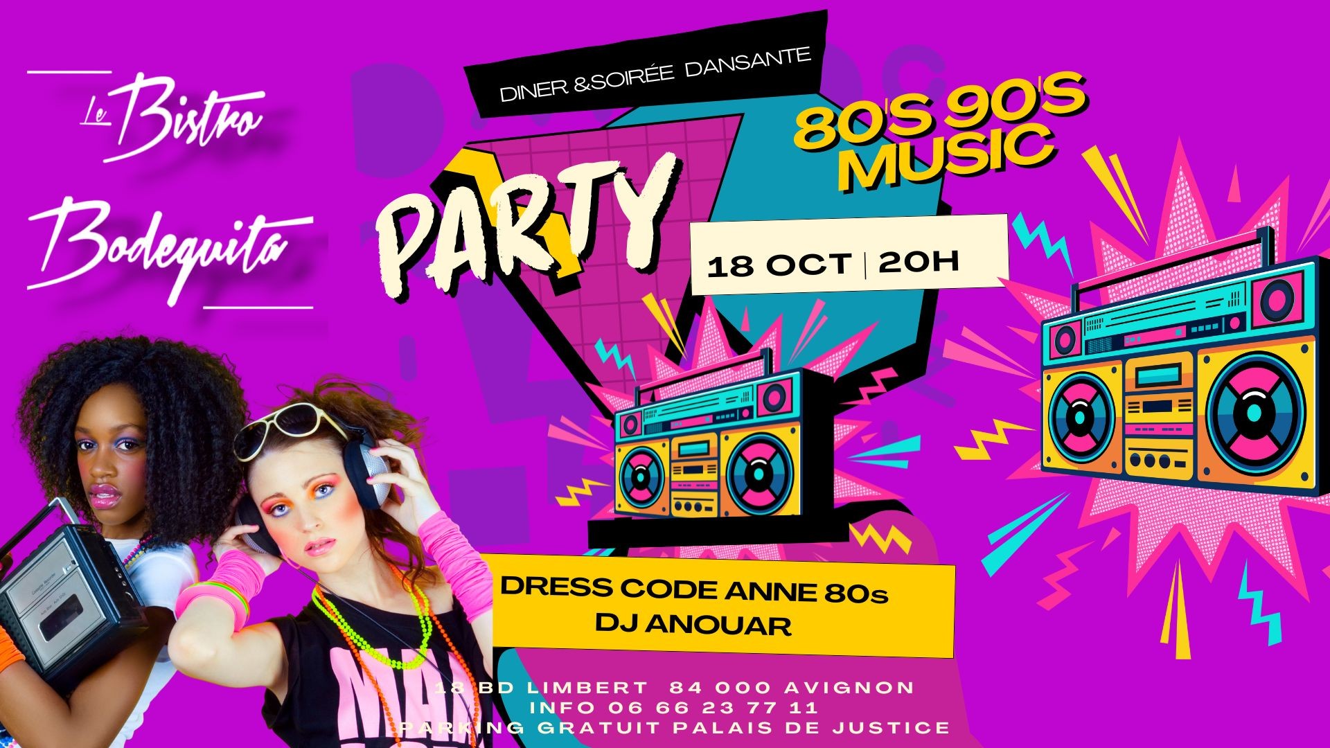 Dress code obligatoire 👑 Années 80 : couleurs flashy, paillettes et vibes rétro assurées 🌈 🍽️ Dîner bistronomique & 🪩 Soirée dansante animée par notre DJ Anouar j 🎧 ⚡ Ambiance légendaire garantie — sortez vos plus beaux looks vintage 🕶️ 📲 Réservez vite vos places – ça va groover toute la nuit